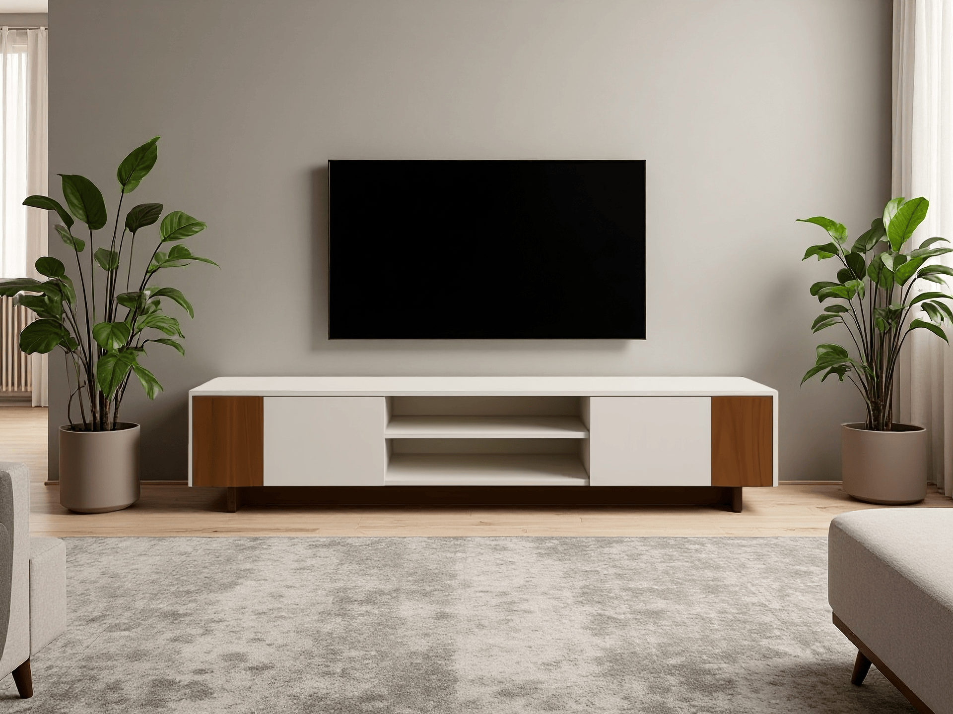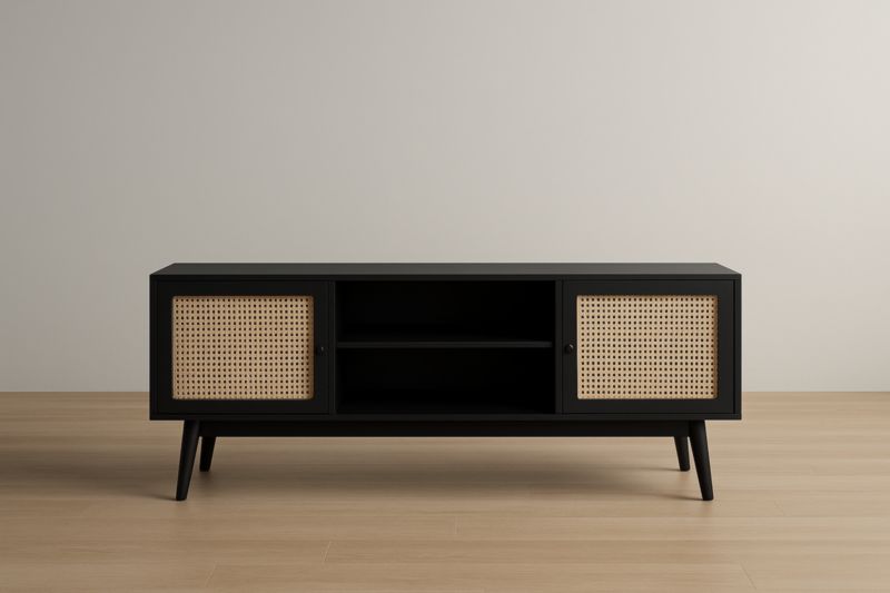 Découvrez notre meuble TV alliant style et fonctionnalité. Parfait pour votre salon, ce meuble offre non seulement un espace pour votre téléviseur, mais aussi des rangements pratiques pour vos équipements multimédia, télécommandes et autres accessoires.